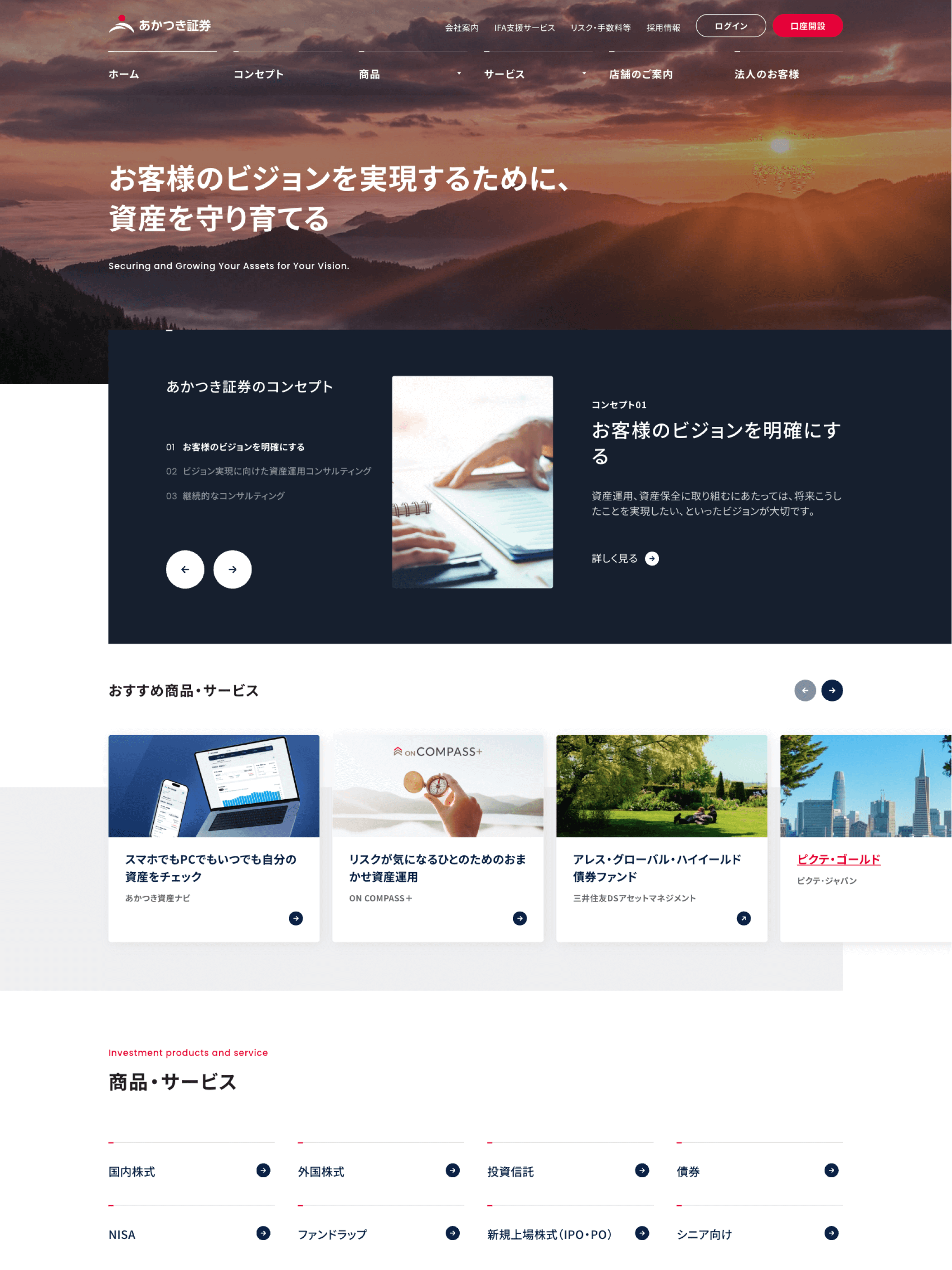 IFA事業が強みの対面証券会社「あかつき証券」のWebサイト。