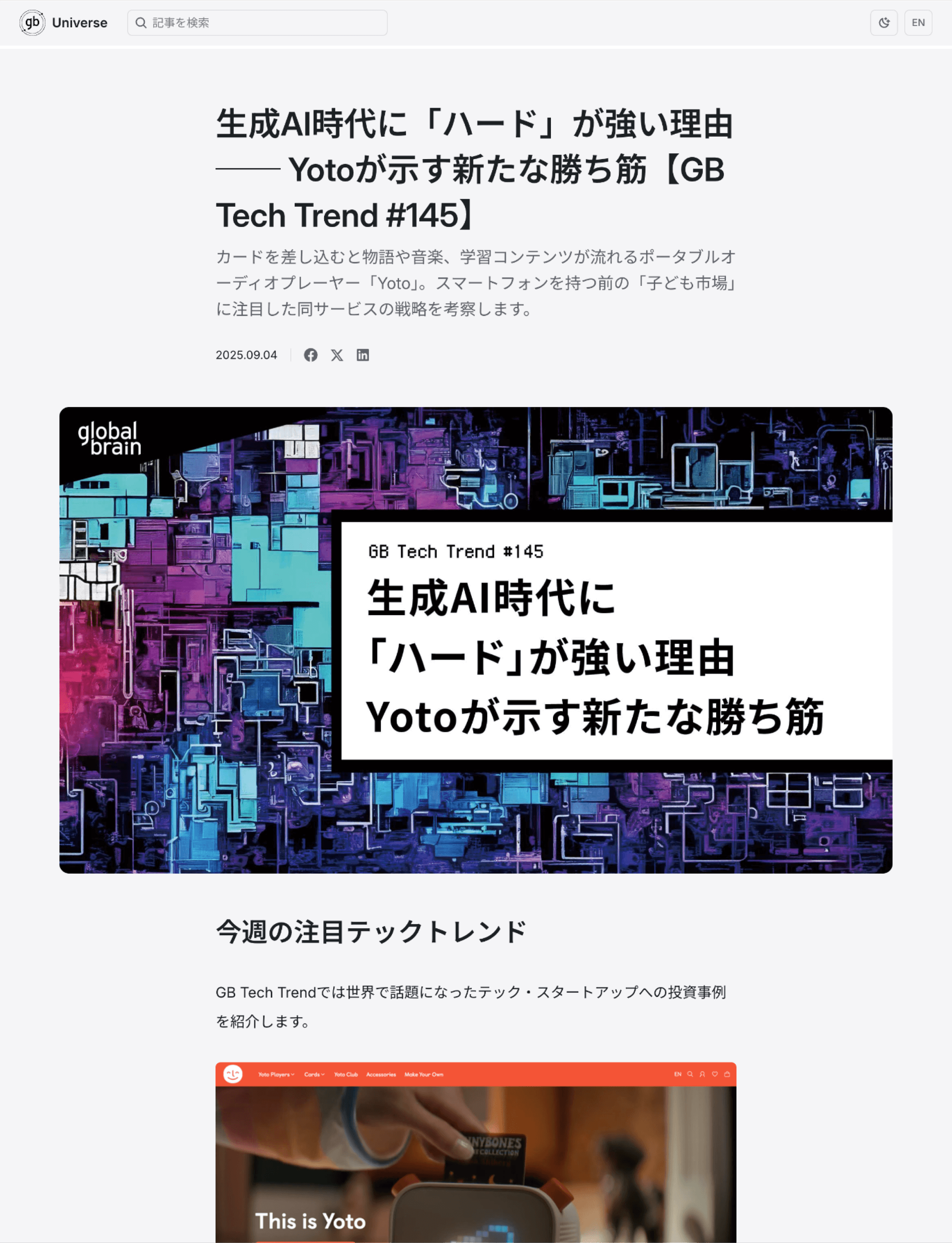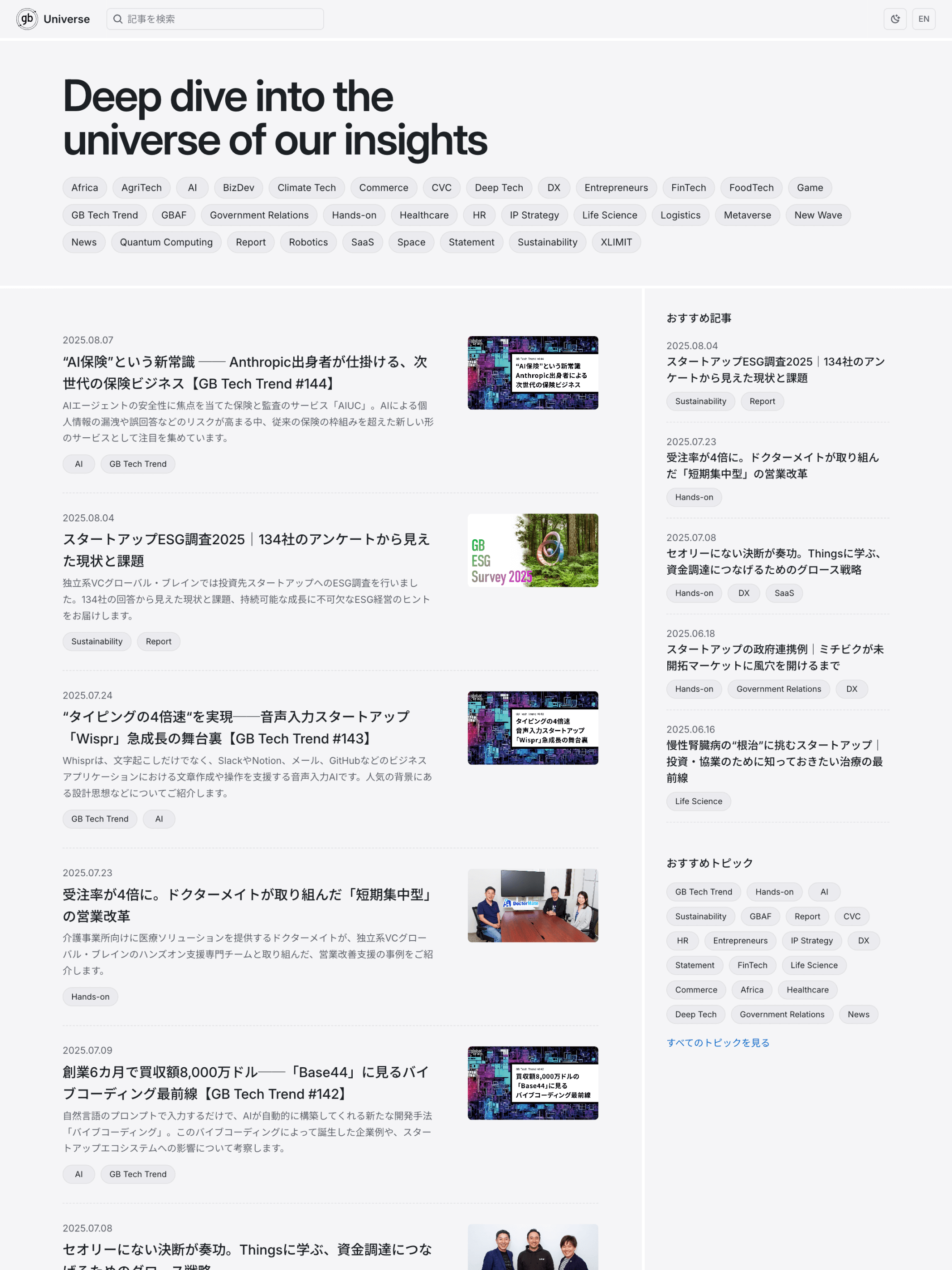 独立系ベンチャーキャピタル「グローバル・ブレイン」が運営するメディアサイト「GB Universe」。