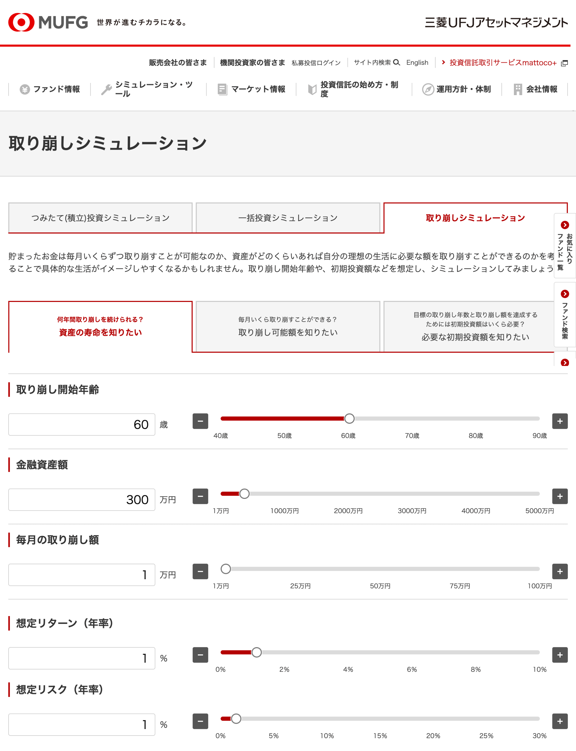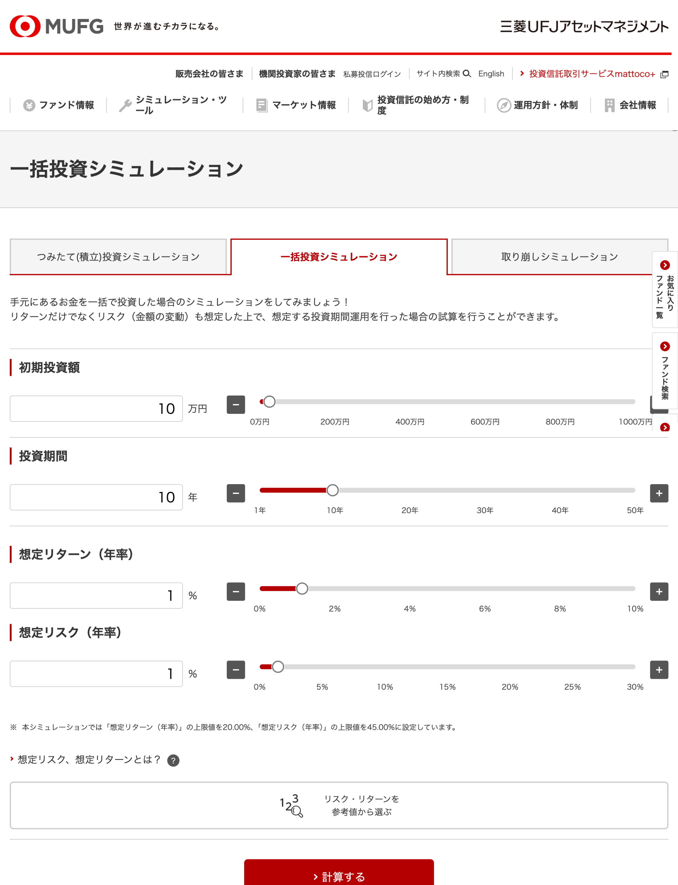 三菱UFJアセットマネジメントのシミュレーションページ。
