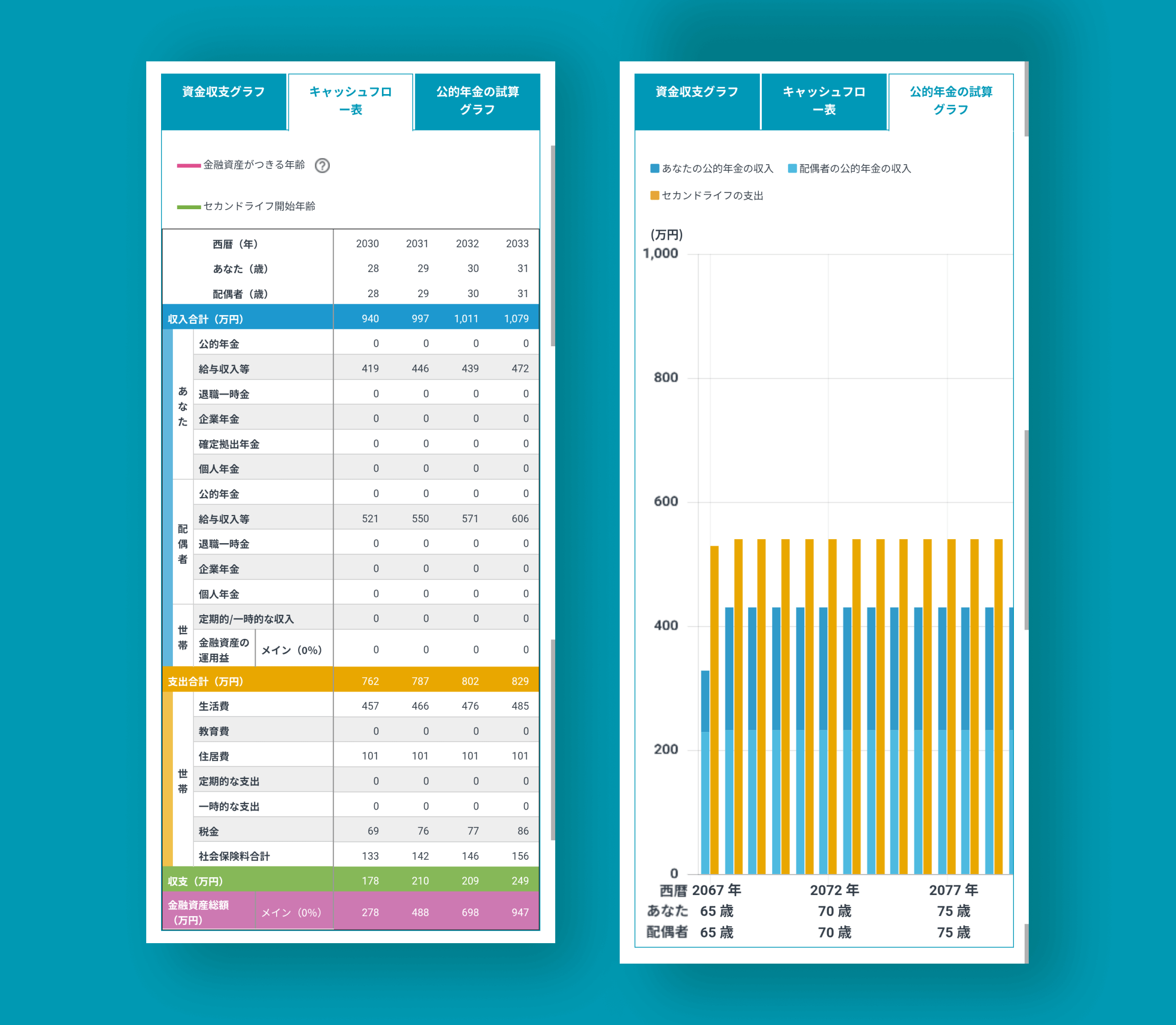 キャッシュフロー表と年金資産グラフで将来の家計を詳細に可視化