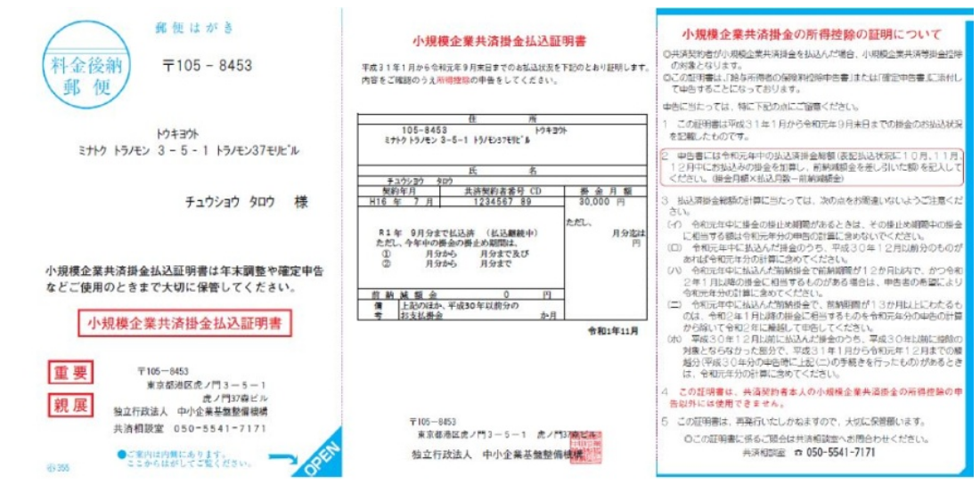 必要書類「小規模企業共済等掛金払込証明書」について